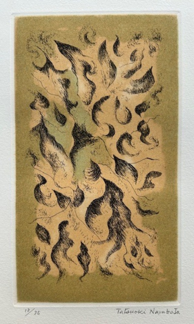 難波田 龍起 1905-1997 北海道旭川市生まれの画家。高村光太郎との出会いをきっかけに美術の道へ進み、川島理一郎に師事。国画会初入選後、自由美術家協会の創設に参加し、戦後は抽象画家として活躍した。1959年以降は個展を中心に制作。毎日芸術賞、北海道新聞文化賞を受賞し、1996年に文化功労者となった。 <title> 海の風 <printmaking year> 1977 <techniques> 銅版画 copperplate print <sign> サインあり with sign <edition> 35/35 <size> sheet size/28×38㎝ image size/18×27㎝ <condition> 良好 この商品はシートのみです。 額が必要な方はご相談ください。 振込手数料は購入者負担です。 This product is only for a sheet. Please contact us if you need a frame. The transfer fee is the responsibility of the purchaser.